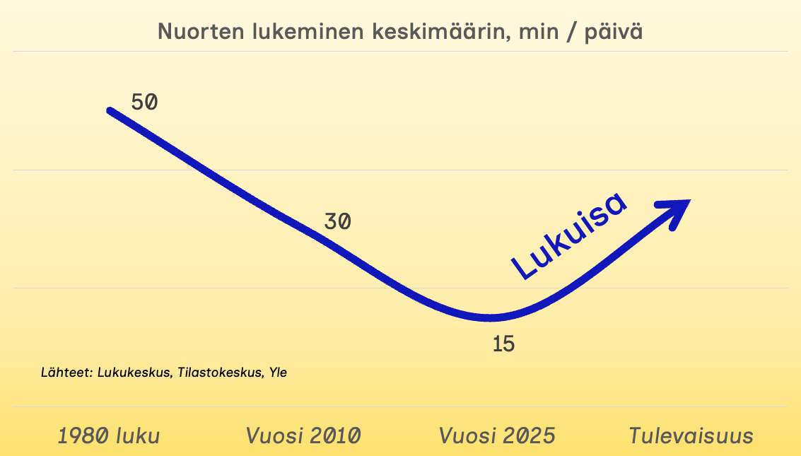 Lasten ja nuorten lukemisen määrä on vähentynyt jo pitkään. Muutos näkyy sanavaraston kaventumisena, keskittymiskyvyn heikkenemisenä ja oppimisen vaikeutumisena. Tämä on ilmiö, jonka opettajat ja vanhemmat tunnistavat arjessa joka päivä.